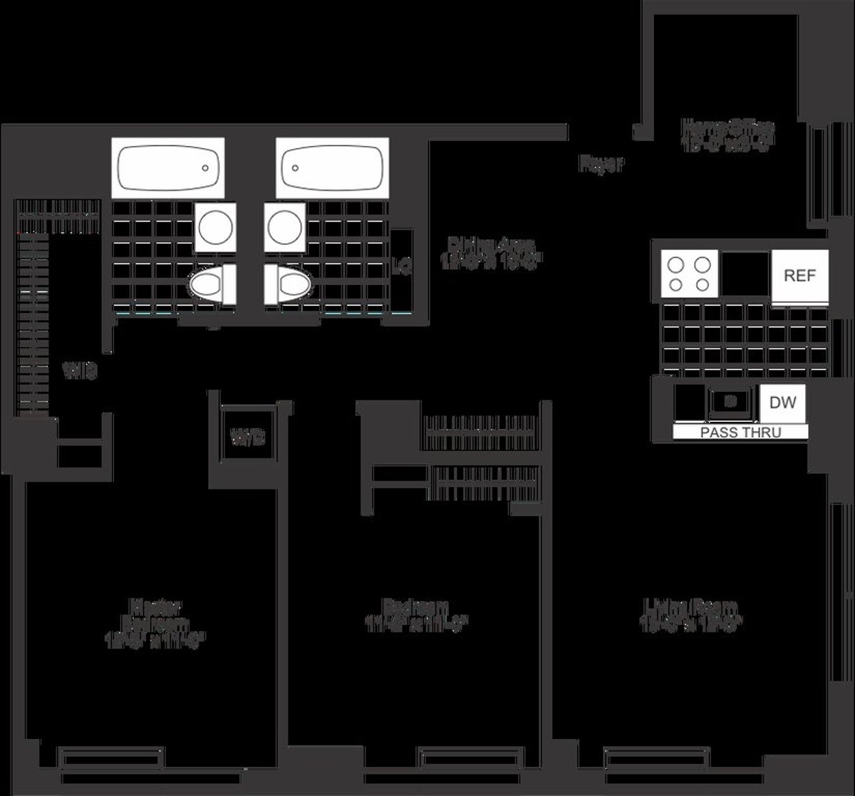 Oversized Corner 2.5 Bedroom, 2 Bath with a separate home office, a pass-through windowed kitchen, stainless steel appliances, floor-to-ceiling windows, an in-home washer/dryer, a walk-in closet, strip wood flooring, solar shades, blackout shades in bedrooms, and southeastern exposure.